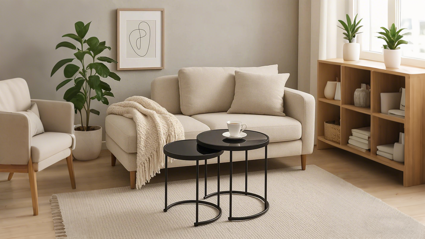 Ensemble de 2 tables gigognes rondes Visio, chromées/miroir
