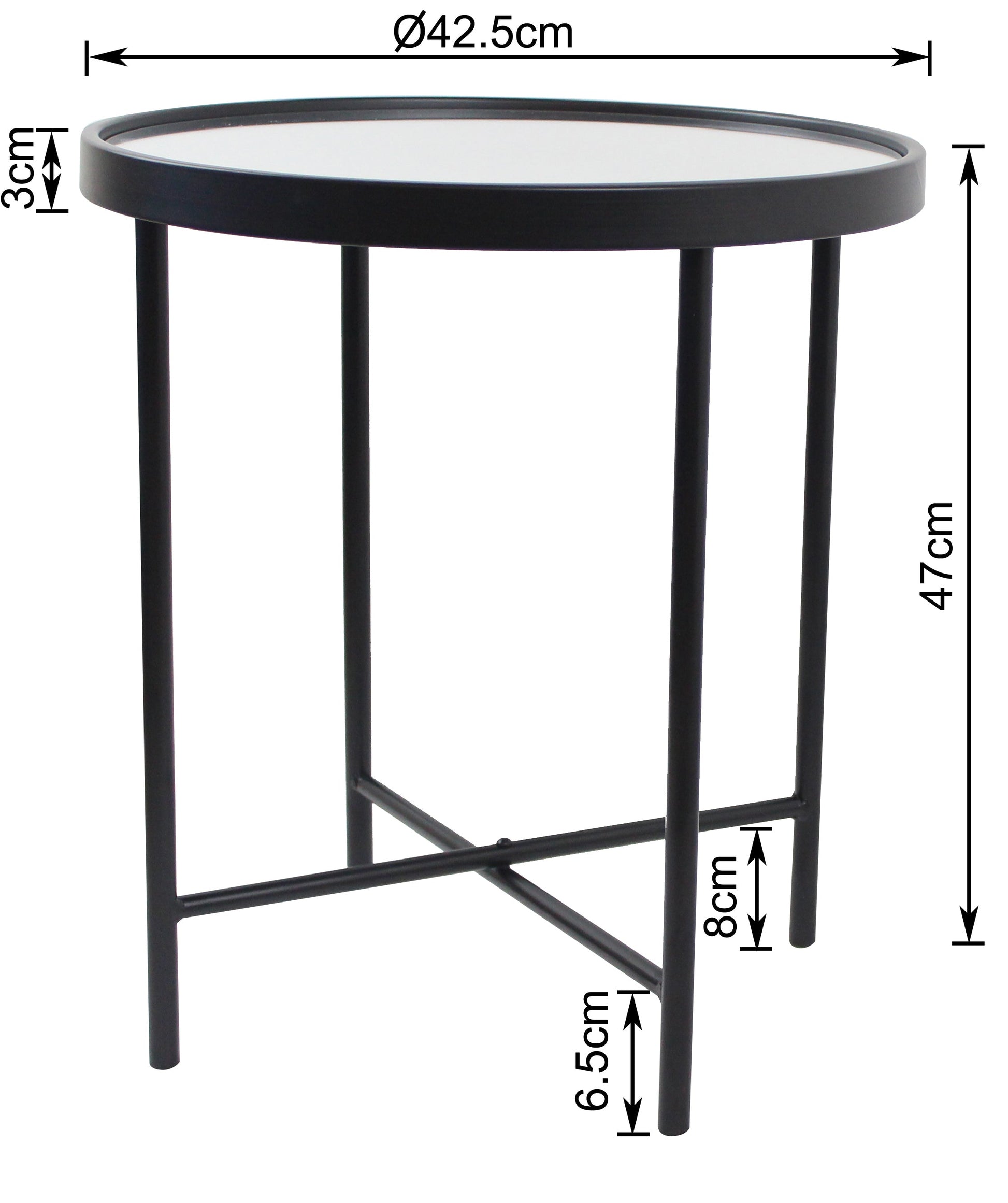 - Cette table d'appoint ronde en métal avec plateau miroir apportera une touche de fraîcheur à votre salon. Son design contemporain, rehaussé d'une finition noire sur la structure métallique, est idéal pour sublimer n'importe quelle pièce. Utilisez des dessous de plat ou des sets de table pour y déposer vos plats chauds et vos ustensiles de cuisine.