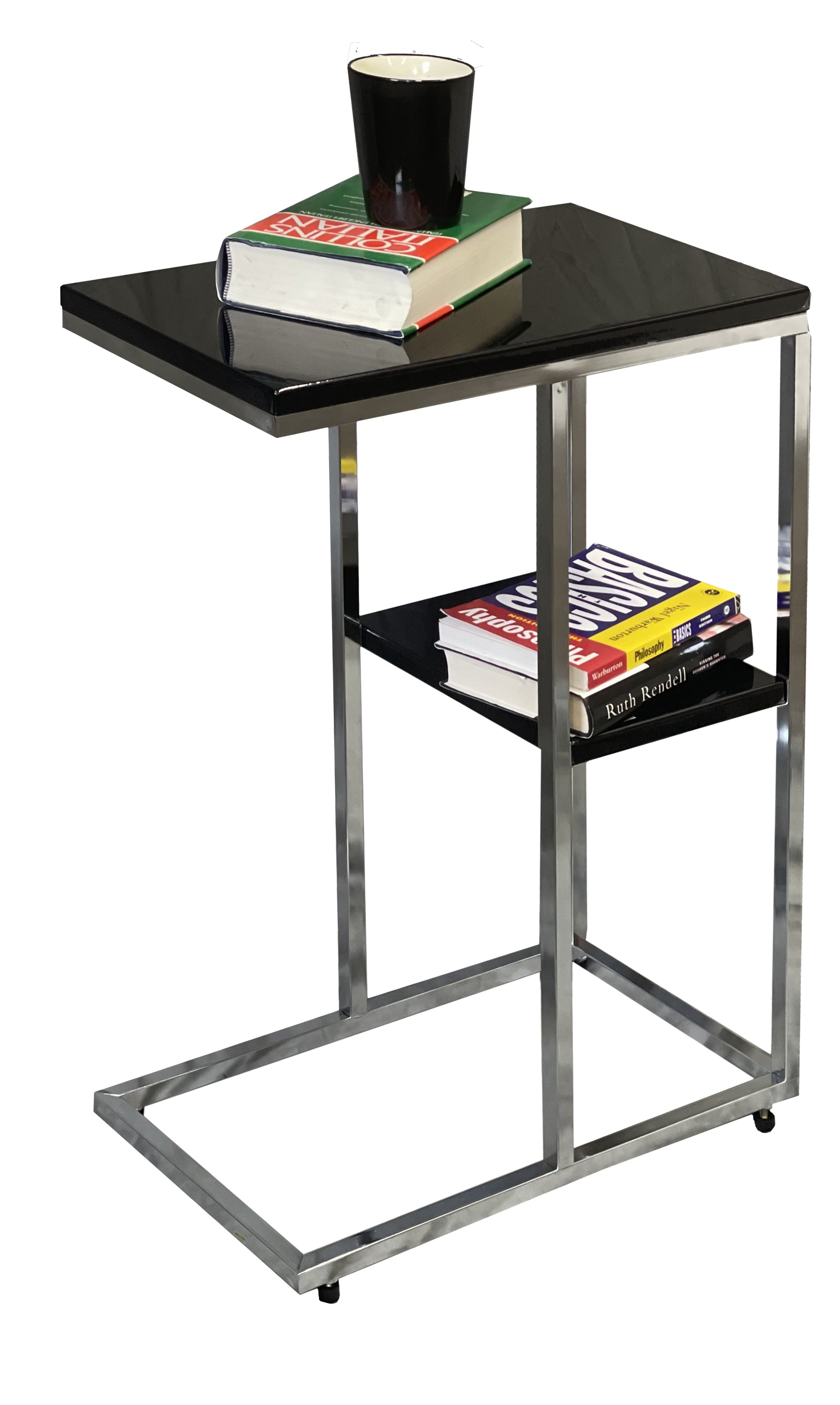 Table d'appoint Bellini en forme de C avec étagère - Noire