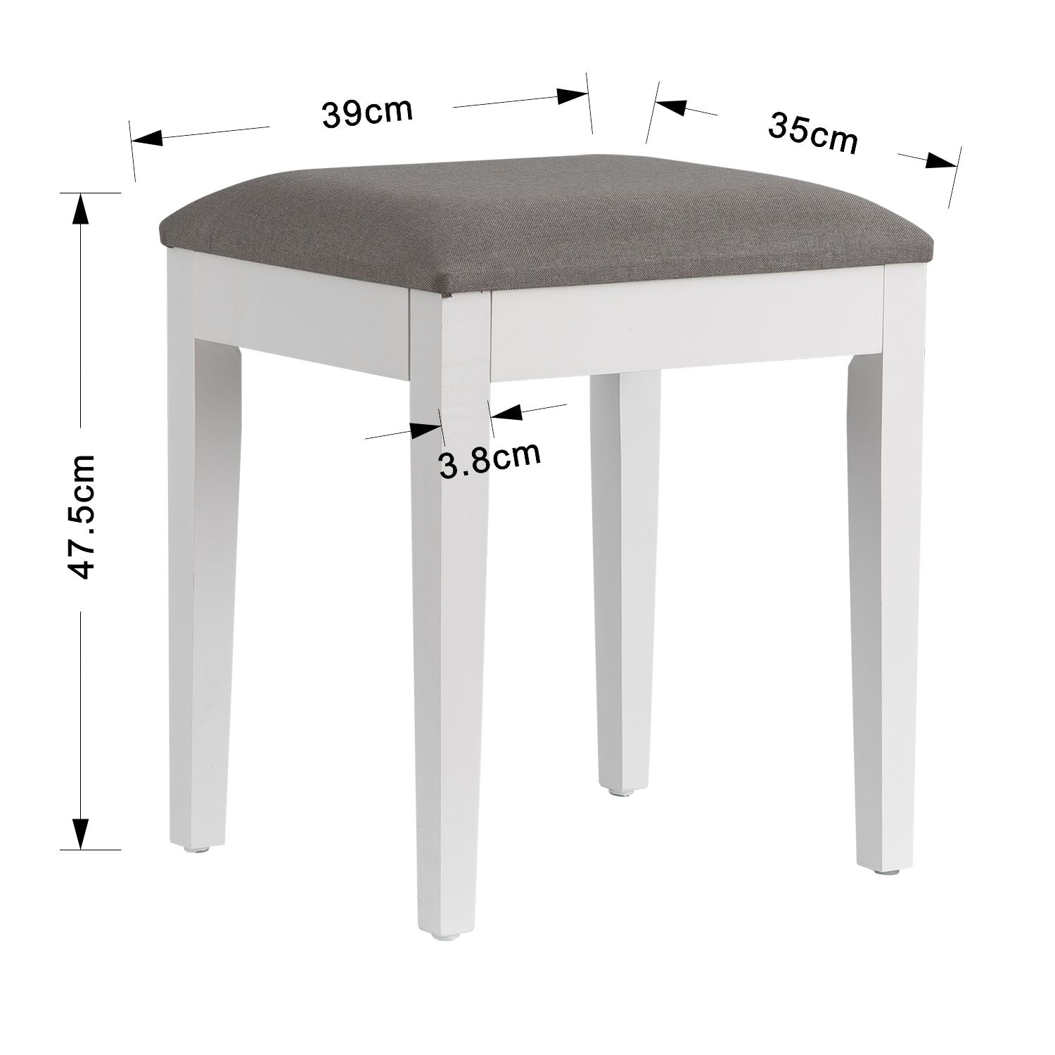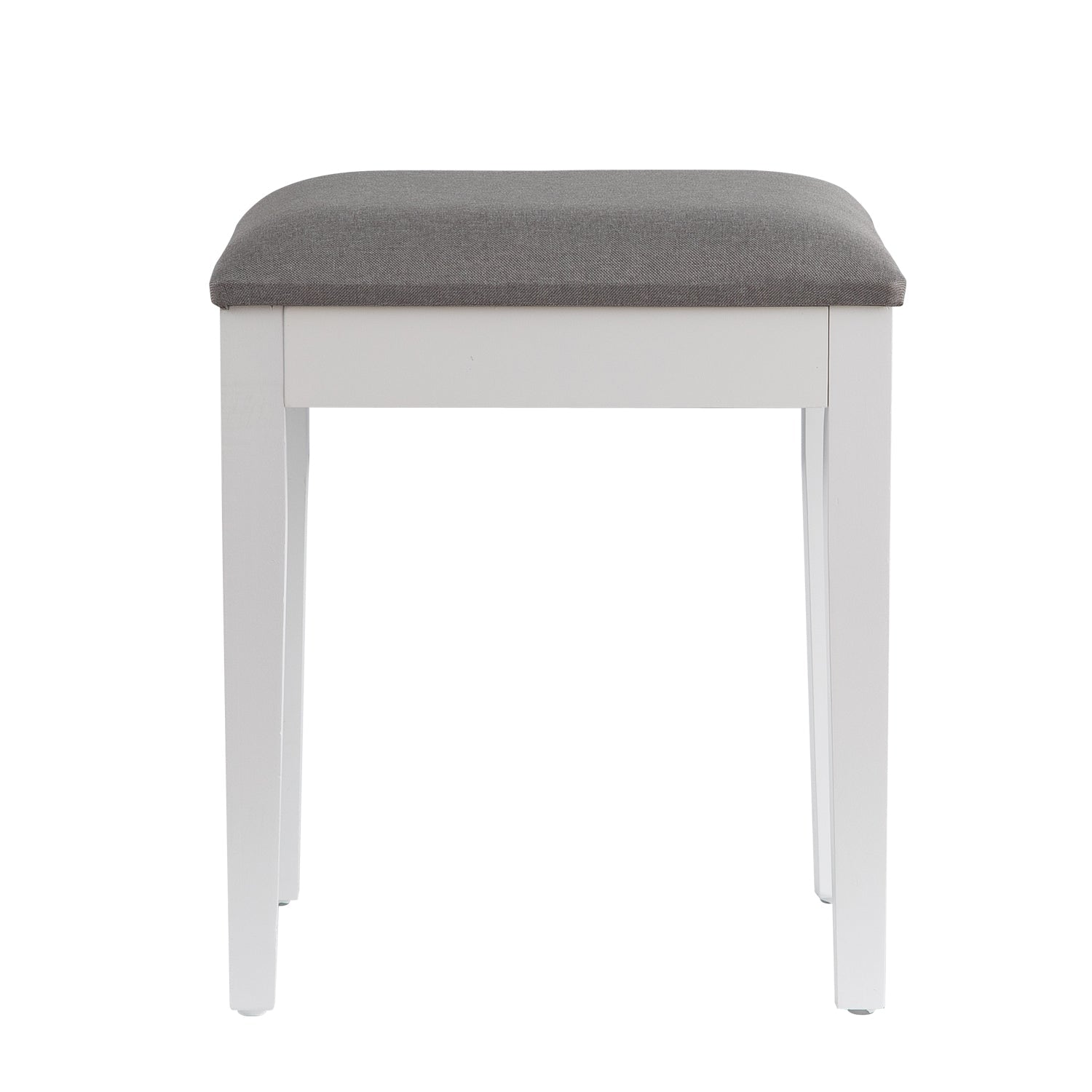 Tabouret de coiffeuse avec assise rembourrée, en bois blanc, coussin gris