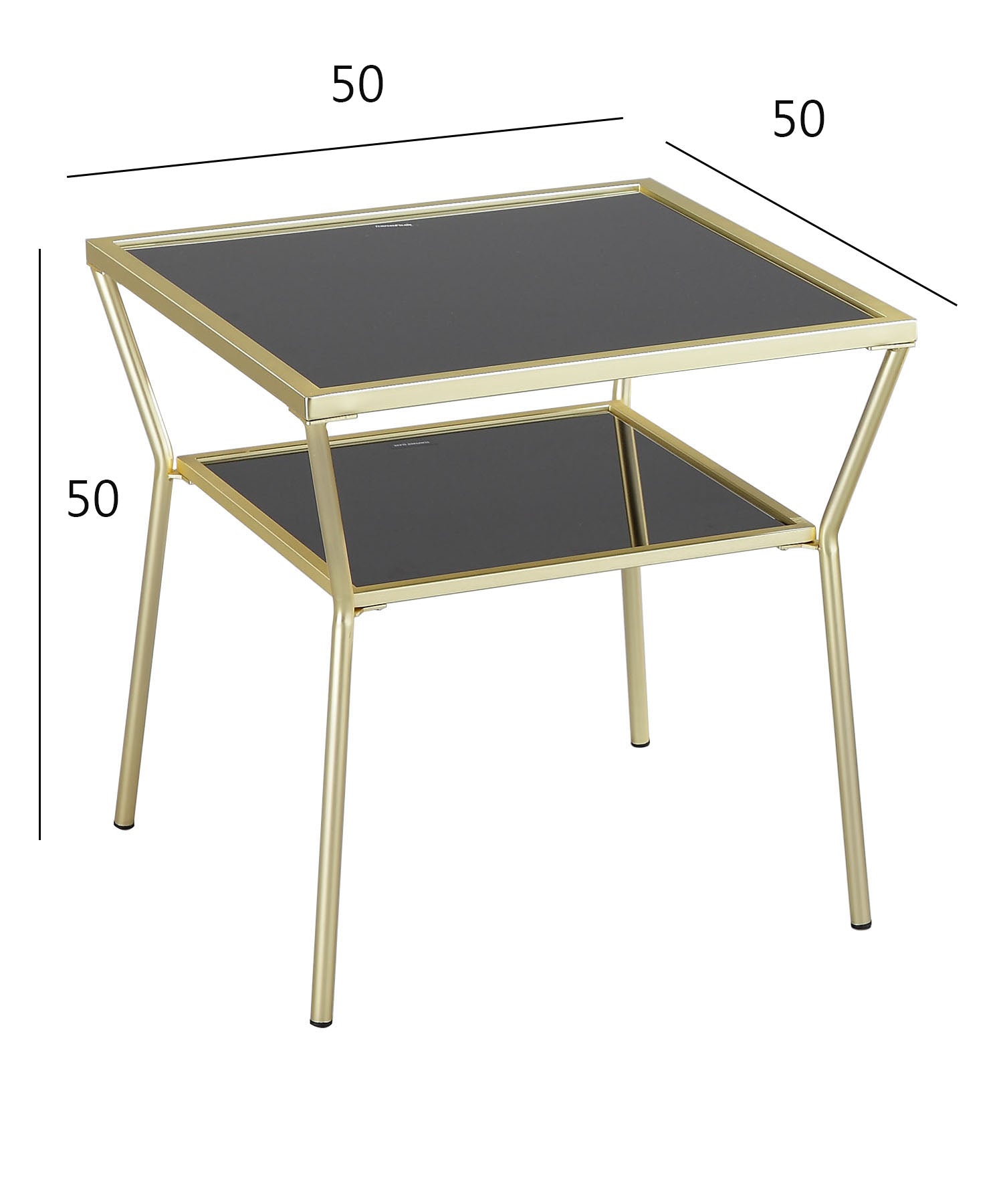 Table d'appoint en verre Fusion (50 x 50 x 50 cm, laiton/noir)