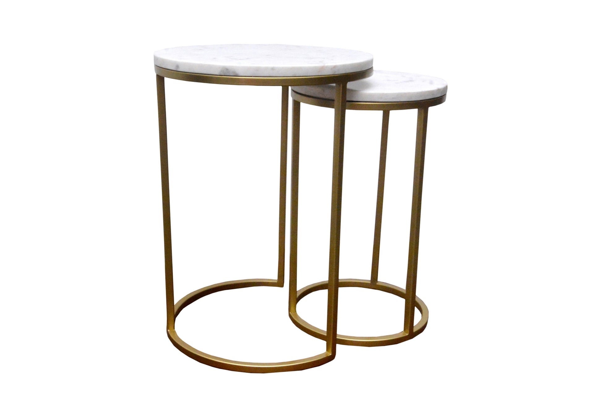 Ensemble de tables gigognes Hiba en marbre blanc avec pieds en métal doré