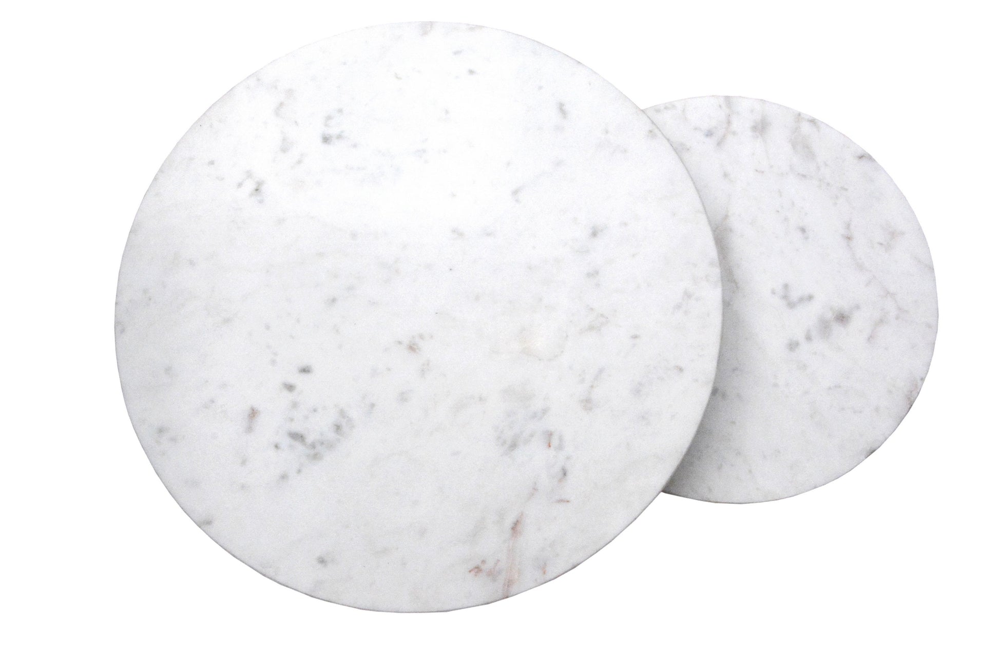 - Les tables gigognes Hiba sont fabriquées avec des plateaux en marbre blanc véritable et une structure circulaire en métal doré. À NOTER : LA COULEUR ET LES VIGNES DU MARBRE RENDENT CHAQUE PIÈCE UNIQUE.