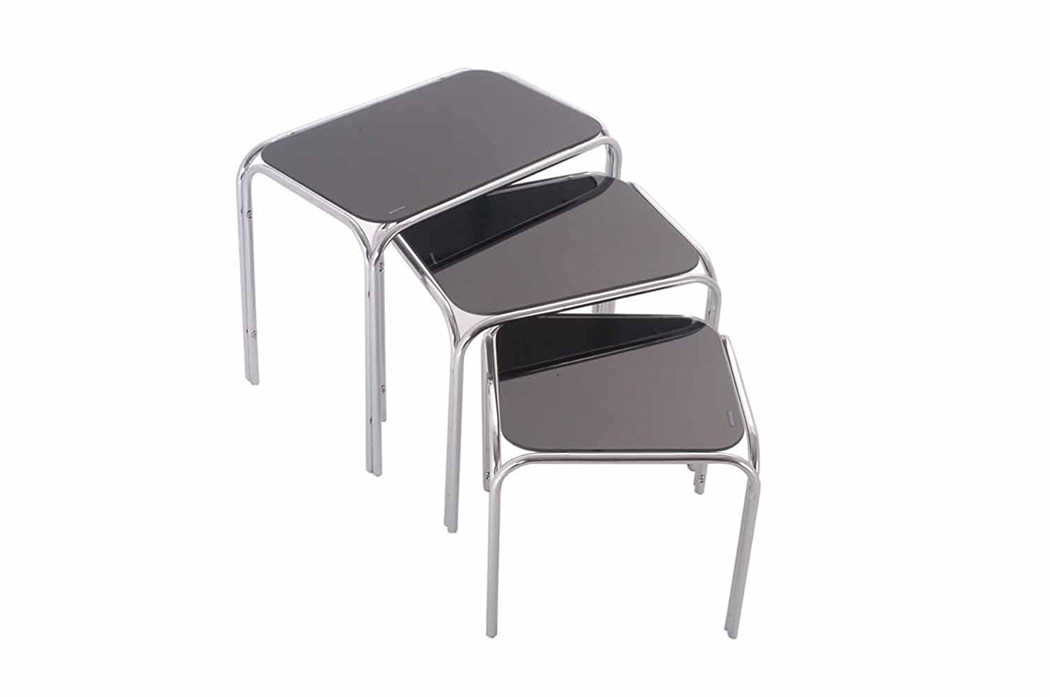 - Ensemble Lisbonne / 3 tables gigognes - Verre noir, pieds chromés.