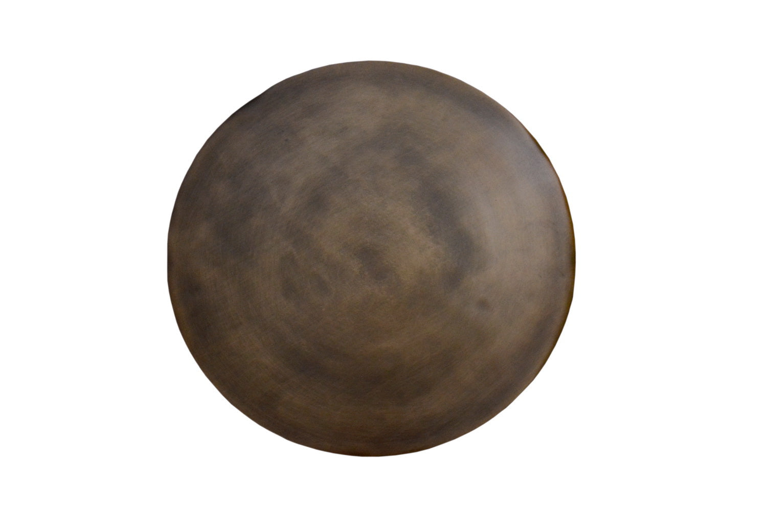 - Table en métal au style unique, elle est conçue avec un plateau en forme de demi-sphère et une base plate en forme de cône.