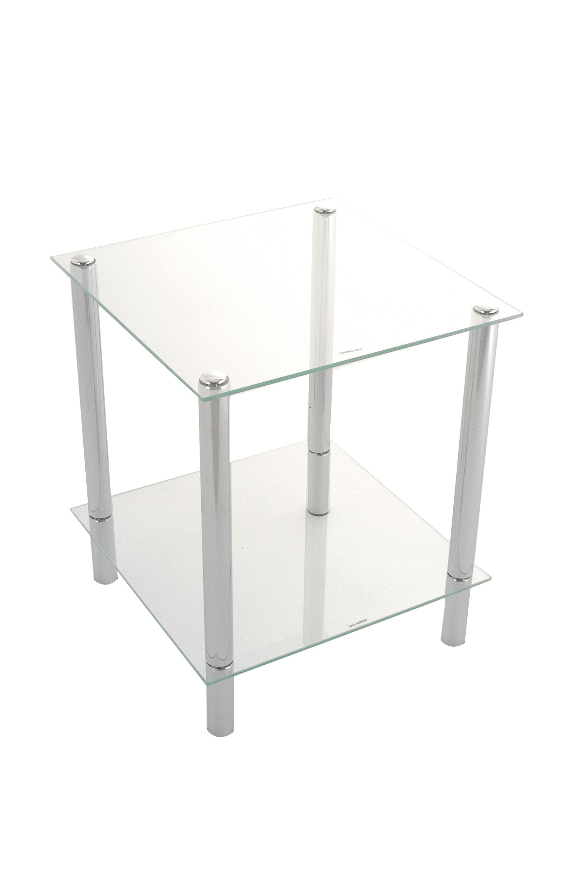 - Dotée d'un design innovant et de qualité, cette table d'appoint moderne associe verre transparent et finitions chromées/acier pour conférer à l'ensemble une allure luxueuse.