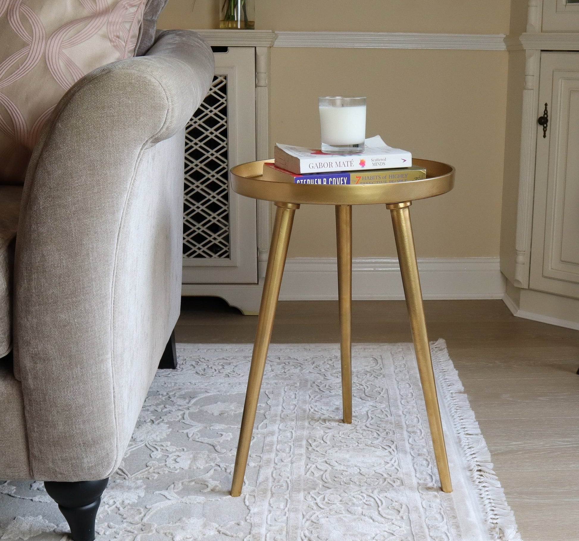 - Minimaliste, élégante et polyvalente, la table d'appoint trépied Maxine s'intègre dans presque toutes les pièces. Fabriquée en aluminium avec une finition métallique raffinée, elle est un véritable bijou.