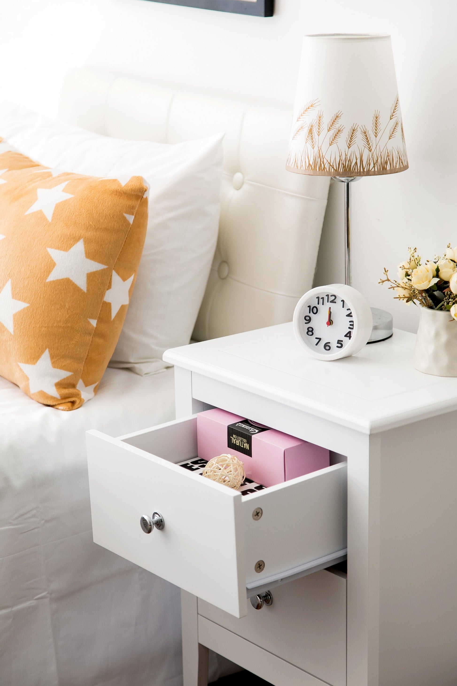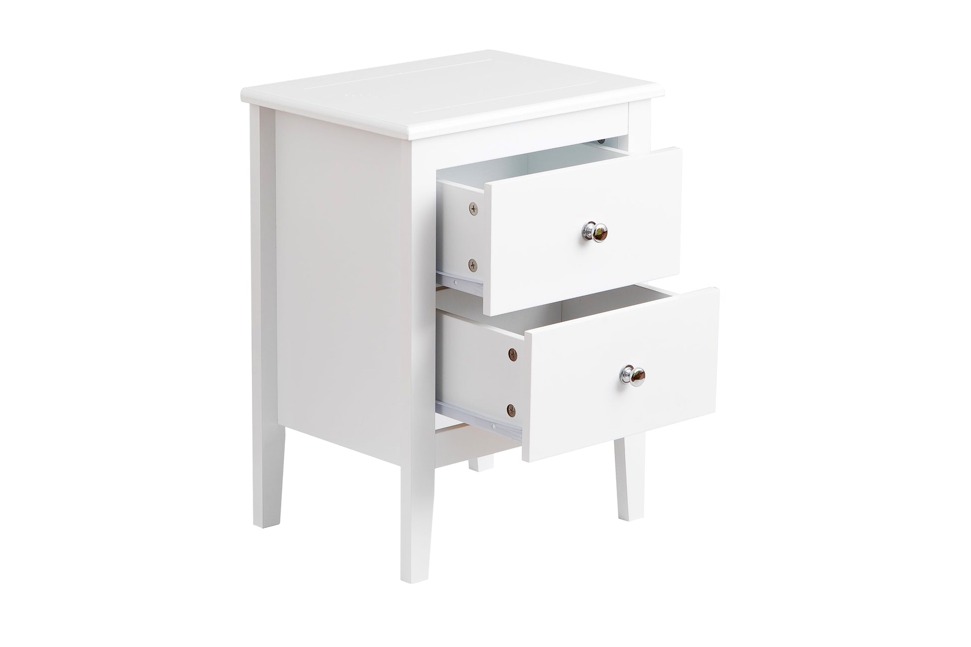 Table de chevet Melia, table de nuit, lampe de chevet pour chambre (blanche, 2 tiroirs)