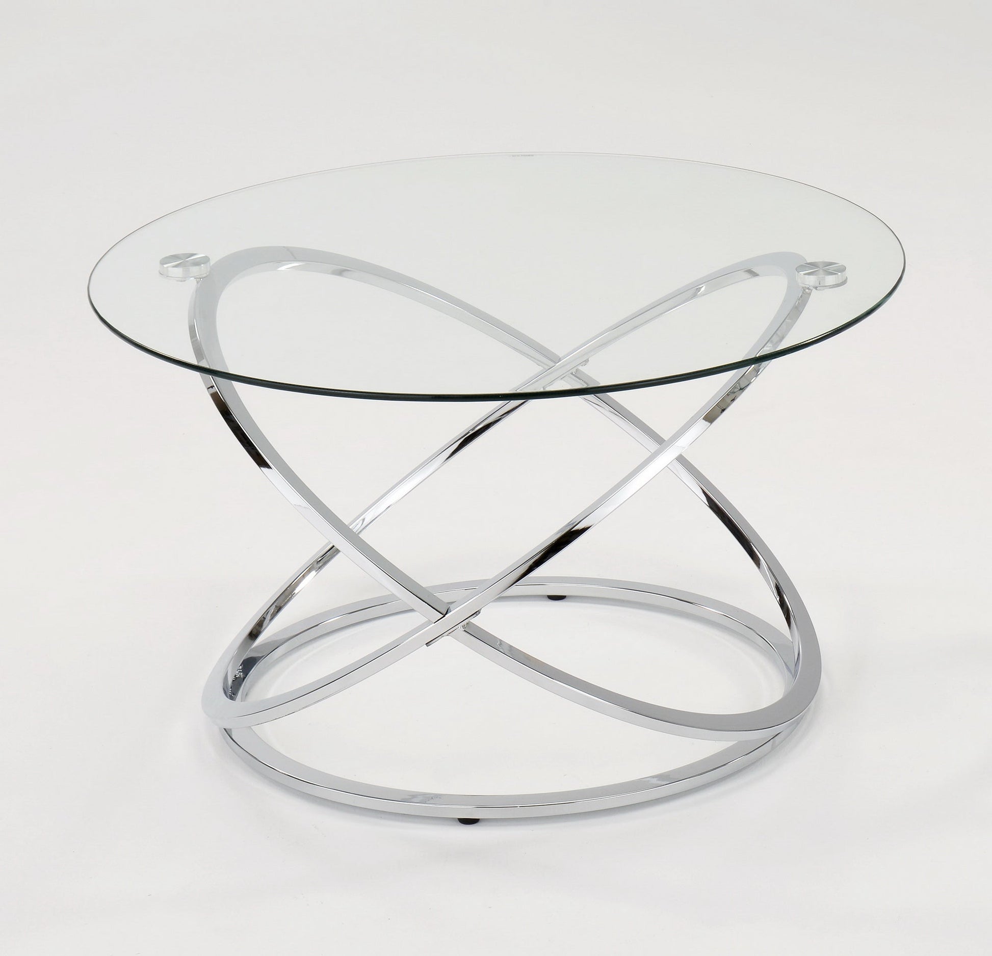 Table basse ronde Monarch en verre transparent avec piètement chromé